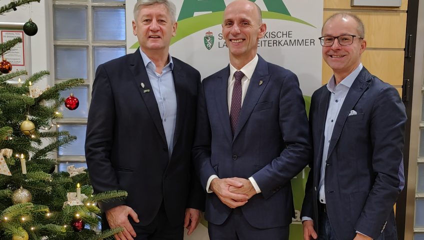 Kürzlich stattete Landesrat für Wirtschaft, Arbeit, Finanzen, Wissenschaft und Forschung Willibald Ehrenhöfer der Landarbeiterkammer einen Besuch ab. LAK-Präsident Eduard Zentner und Direktor Johannes Sorger freuten sich über den Besuch und besprachen gemeinsam mit LR Ehrenhöfer aktuelle wirtschaftliche Themen und Schnittpunkte mit der steirischen Land- und Forstwirtschaft. Auch die aktuelle Budgetsituation der öffentlichen Hand sowie Fachthemen aus dem Bereich Raum- und Bauordnung waren Teil des regen Meinungsaustausches.
