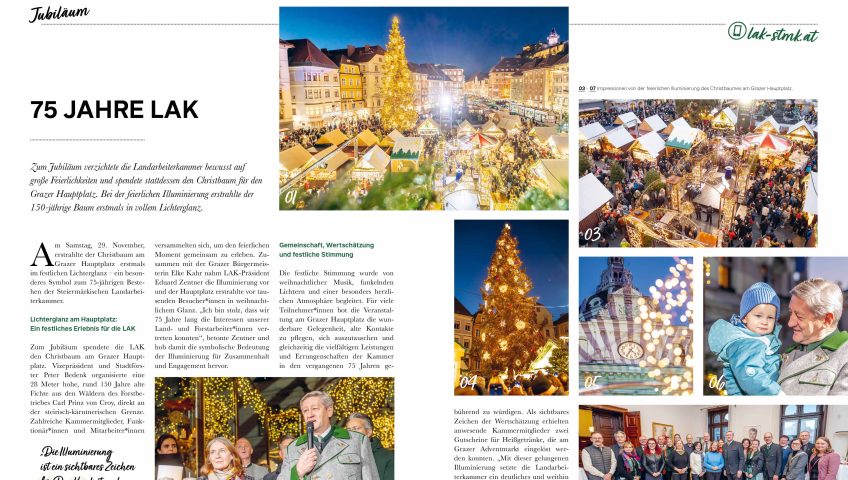 „Im dichten Blätterwald der Zeitungen und Zeitschriften wird mit diesem unserem Mitteilungsblatt ein neues junges Bäumchen gepflanzt.“ So begann Alois Deimel, Präsident der Landarbeiterkammer vor genau 75 Jahren seine Kolumne. Es war der Beginn einer eigenen Kammerzeitung. Vor 75 Jahren wurde nicht nur die Steiermärkische Landarbeiterkammer als Interessenvertretung gegründet, sondern mit dem Mitteilungsblatt auch ein eigenes Informationsmedium geschaffen.