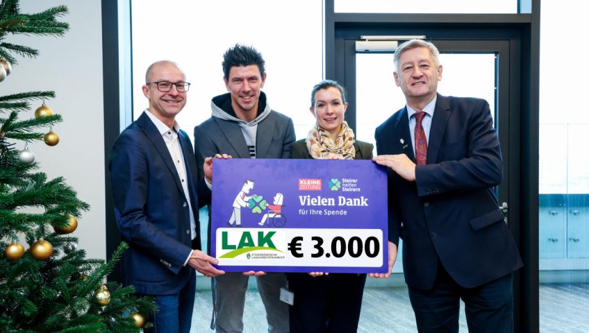 LAK-Präsident Eduard Zentner und Direktor Johannes Sorger übergaben die Spende an die Verantwortlichen der Kleinen Zeitung, dem Präsidenten von "Steier helfen Steirern" Andreas Prückler und der Leiterin Sandra Bleiberger-Krajnc.